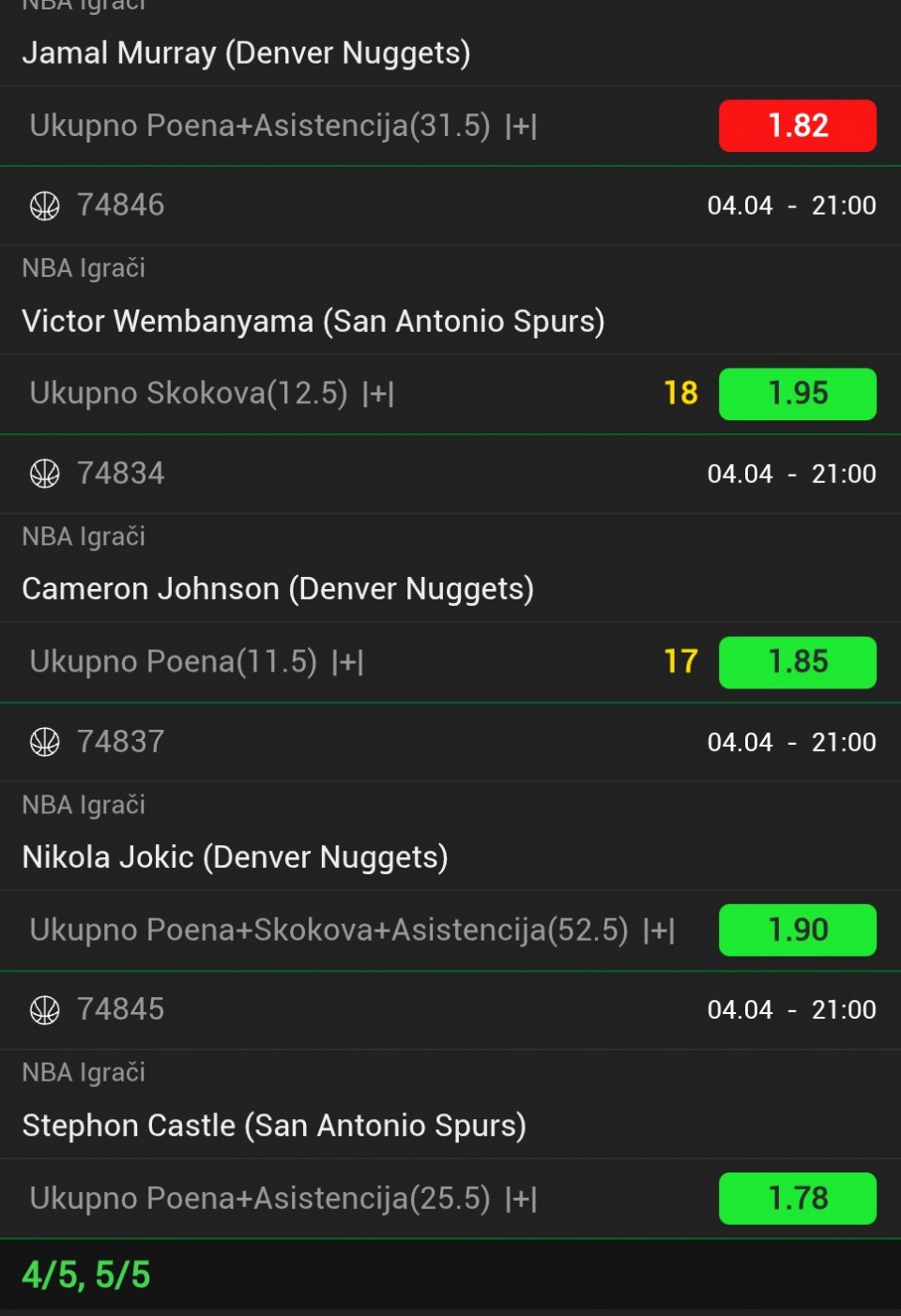 Ko zeli i 4+(3,10) i 5+(5,25)