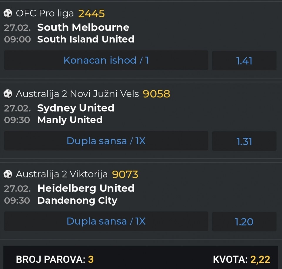 17.02. ✅...ko sve igra progresiju i dupla uloge, neka mi se javi u inbox, jer neću kačiti više tipove ovde zbog spamovanja, pozdrav