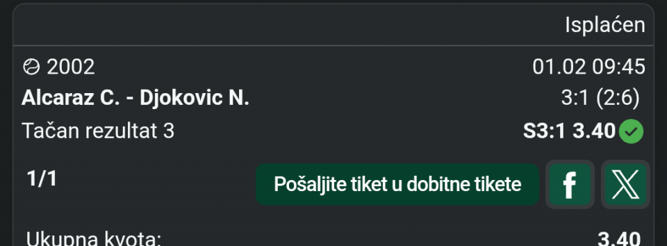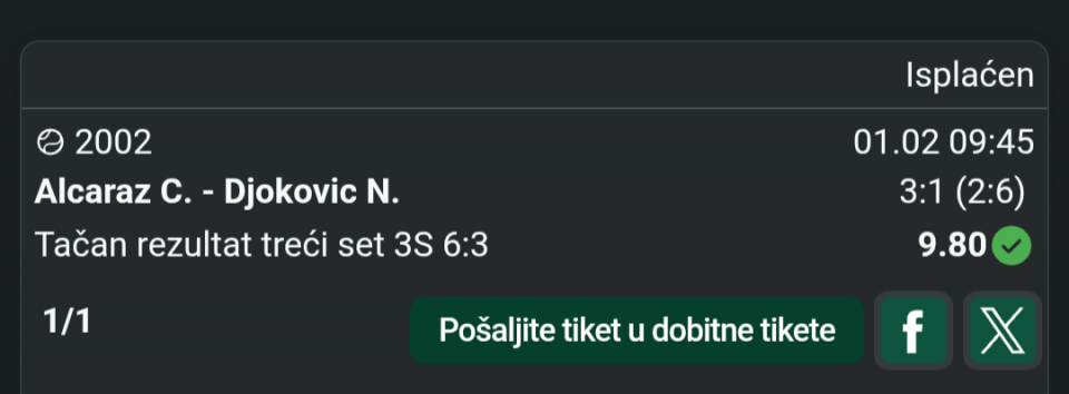 Ponos sreca i dika i sto je najbitnije da se napomene Novak nas jos jednom nije razocarao.. tunrir na najvecem mogucem nivou...Svaka cast obojici sav rispekt za Kuma Alkaraza..