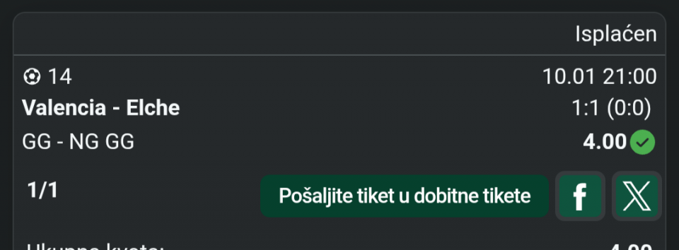 Nikolabuksi Greska je u kladionici za Alzir, tiket je prolazan