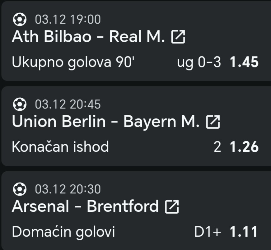 Pozdrav braco,ziv je Totti umro nije.Borba..Fokus je bio malo na privatni i emotivni zivot ali nedostatak finansija je uvek problem,ono malo sto ljubav kvari.Para uvek treba..Bi zavrnuo danas solidno nesto za 2000€ ali nisam pratio nista od...Pozdrav braco,ziv je Totti umro nije.Borba..Fokus je bio malo na privatni i emotivni zivot ali nedostatak finansija je uvek problem,ono malo sto ljubav kvari.Para uvek treba..Bi zavrnuo danas solidno nesto za 2000€ ali nisam pratio nista od septembra ni ulazio na rezultate..Sta ima danas dobro kvota 2-2.5 ? Show more