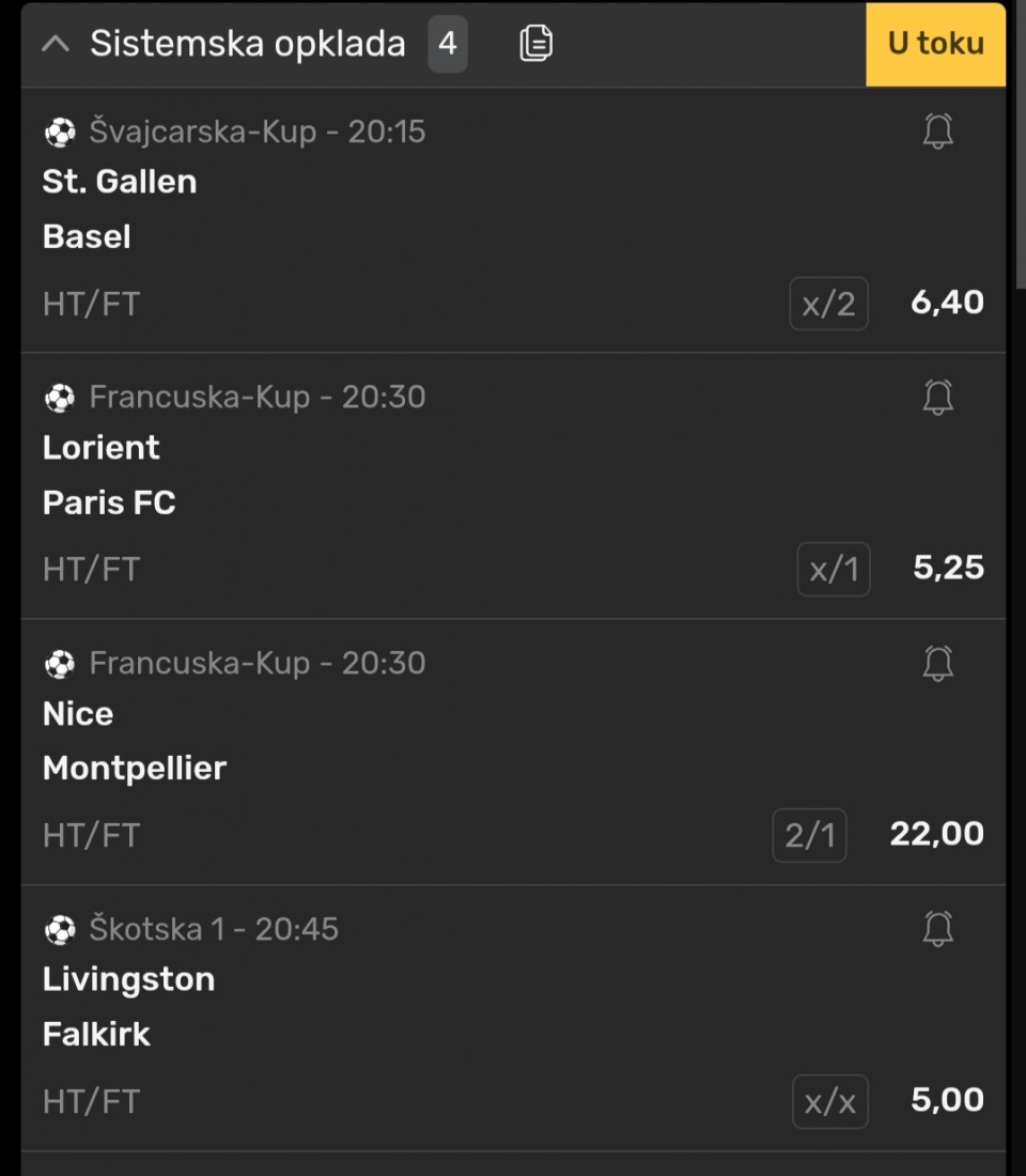 Aberdin-Seltik X2 (1,11)...Kad igram ono sto inace ne igram (2+), onda tako i prodjem.😡