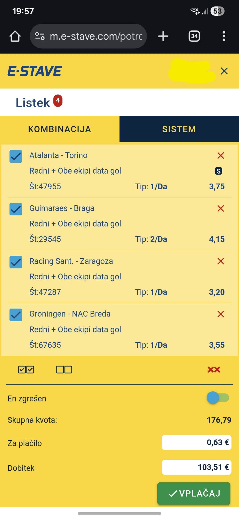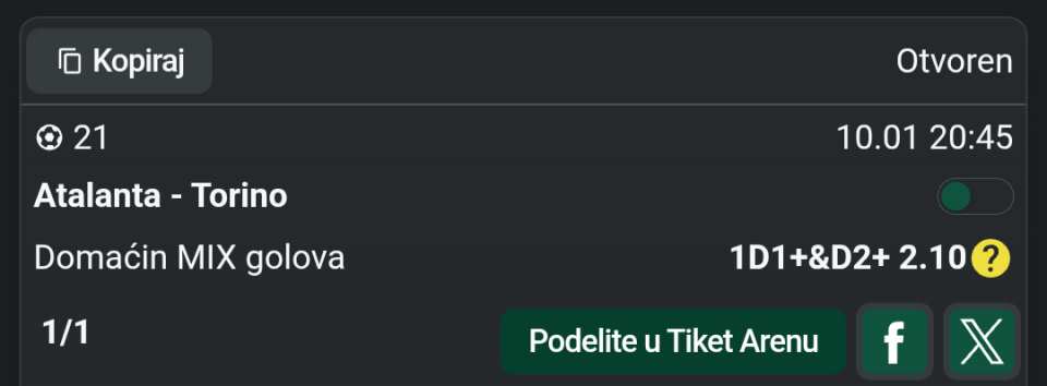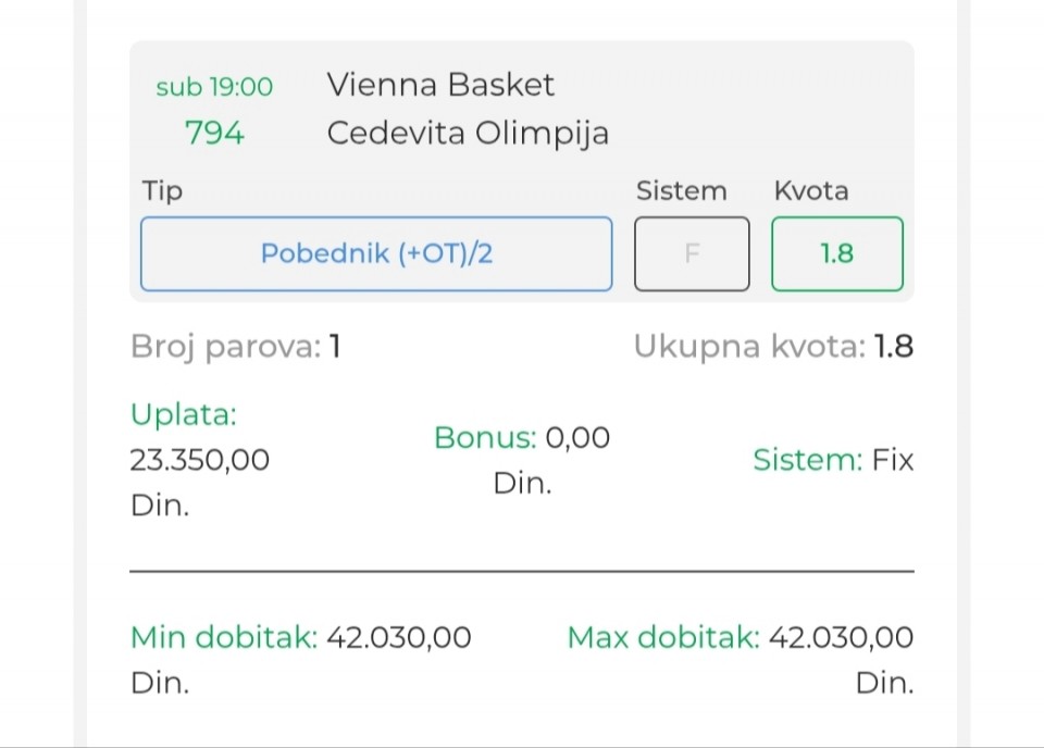 Danas iman neke kombinacije ali evo moze te dat Prijedloge ,tako je smatram najbolje . Stavi te svoje prijedloge . Sritnoo svima ,idemo gas 💪💪😃