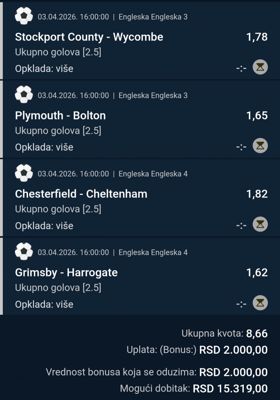 Sorry zbog spama , ako zna neko ....Max bet Specijal derbi ....imam 5 pogodaka pise dobitni ....jel sad da ocekujem neki free bet ili nista od toga ....