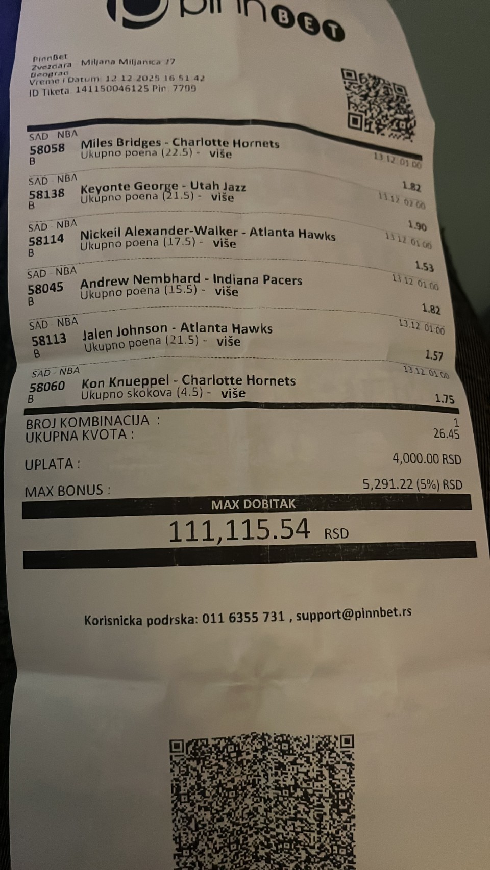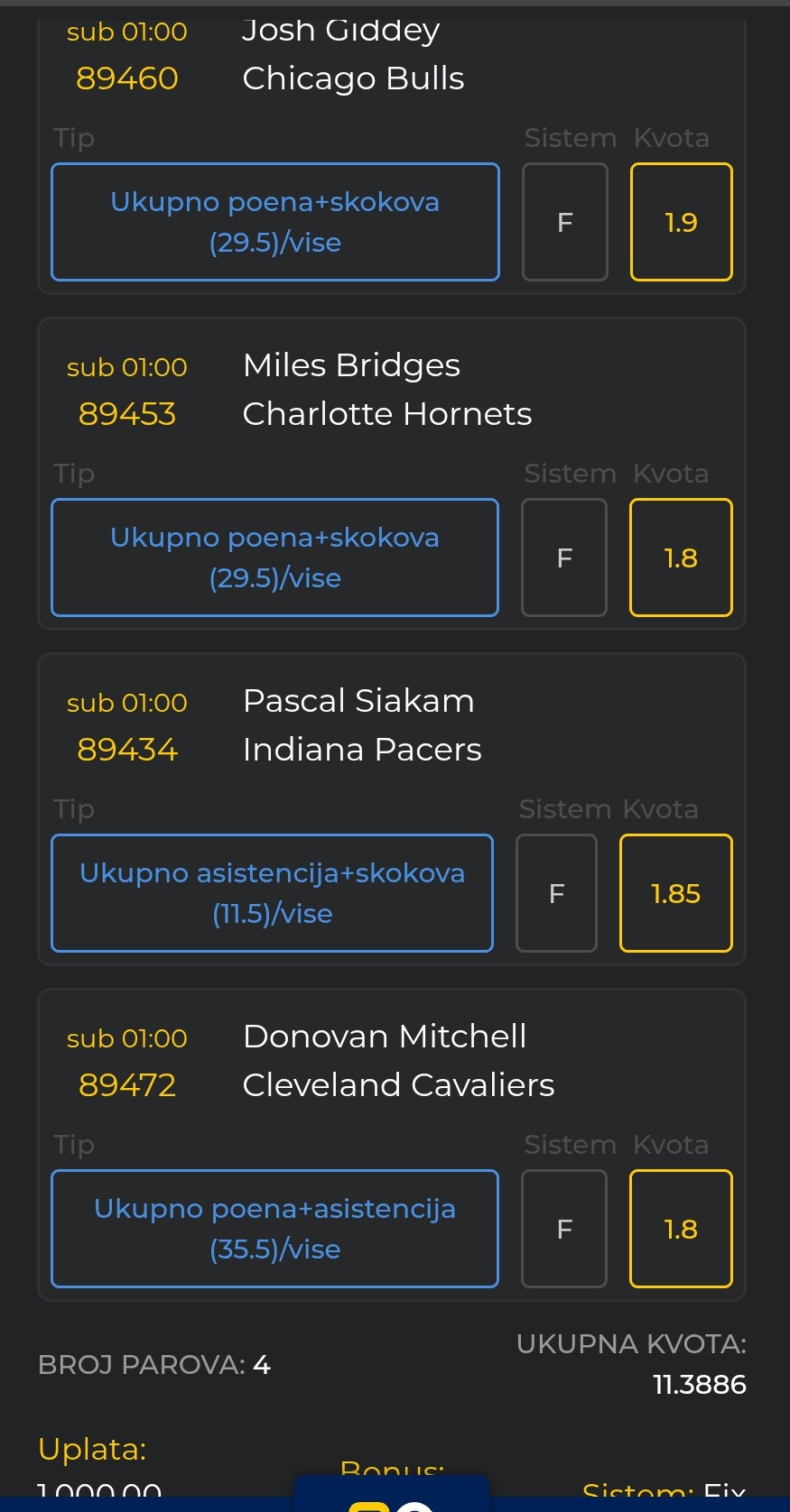 Nastavljamo sa NBA iako padamo svaku noc ali ne i veceras, zadnji je + ovaj Šakirin bivši zagondzija.