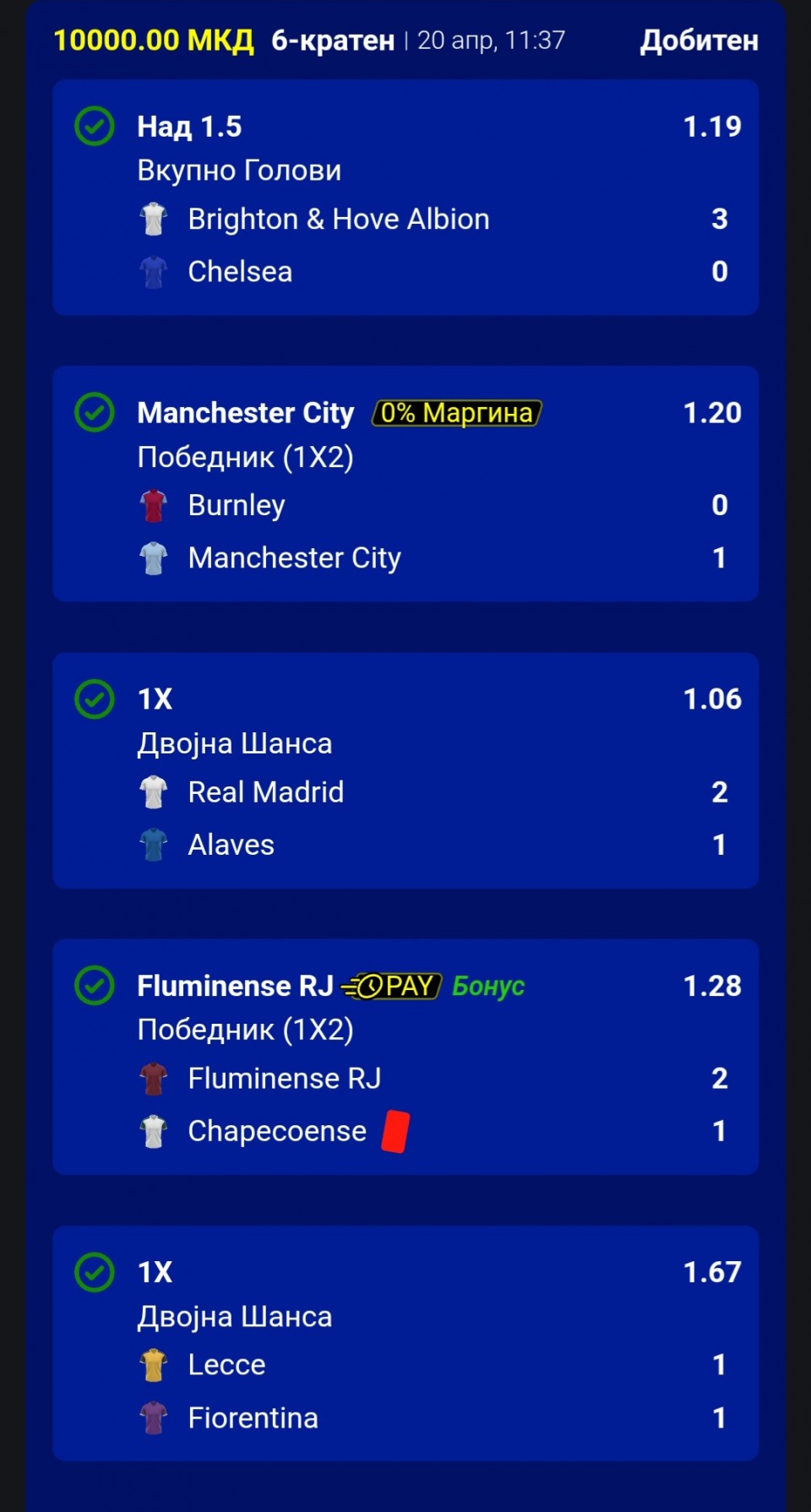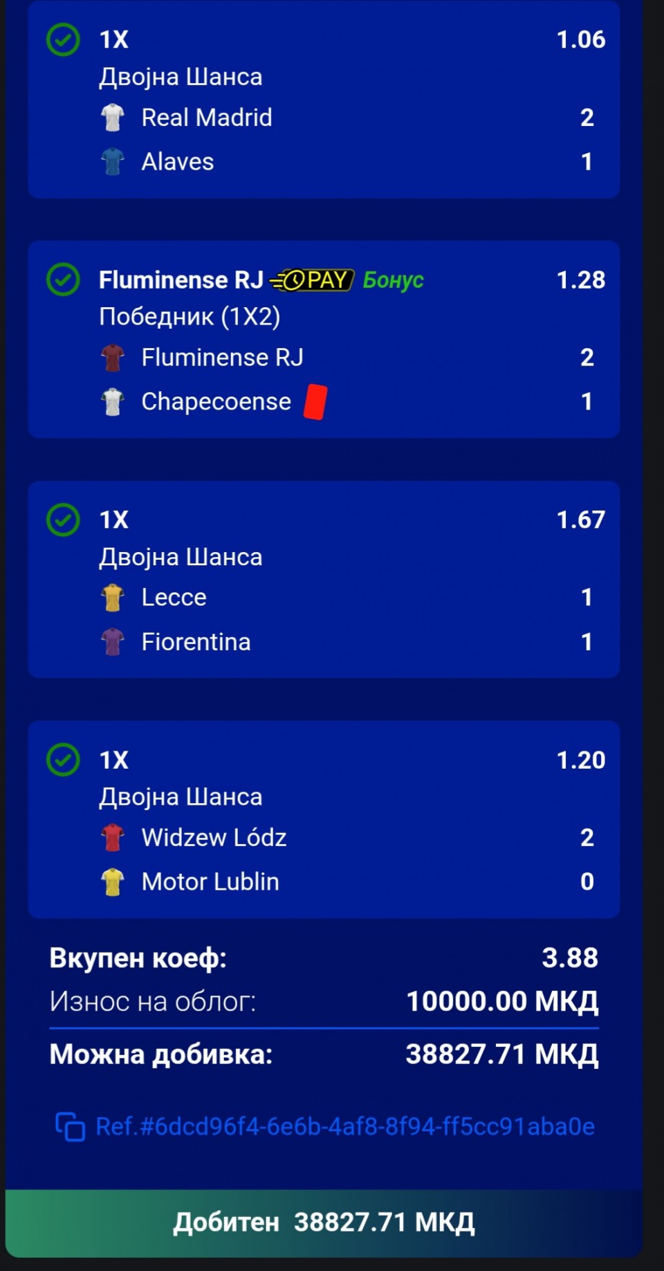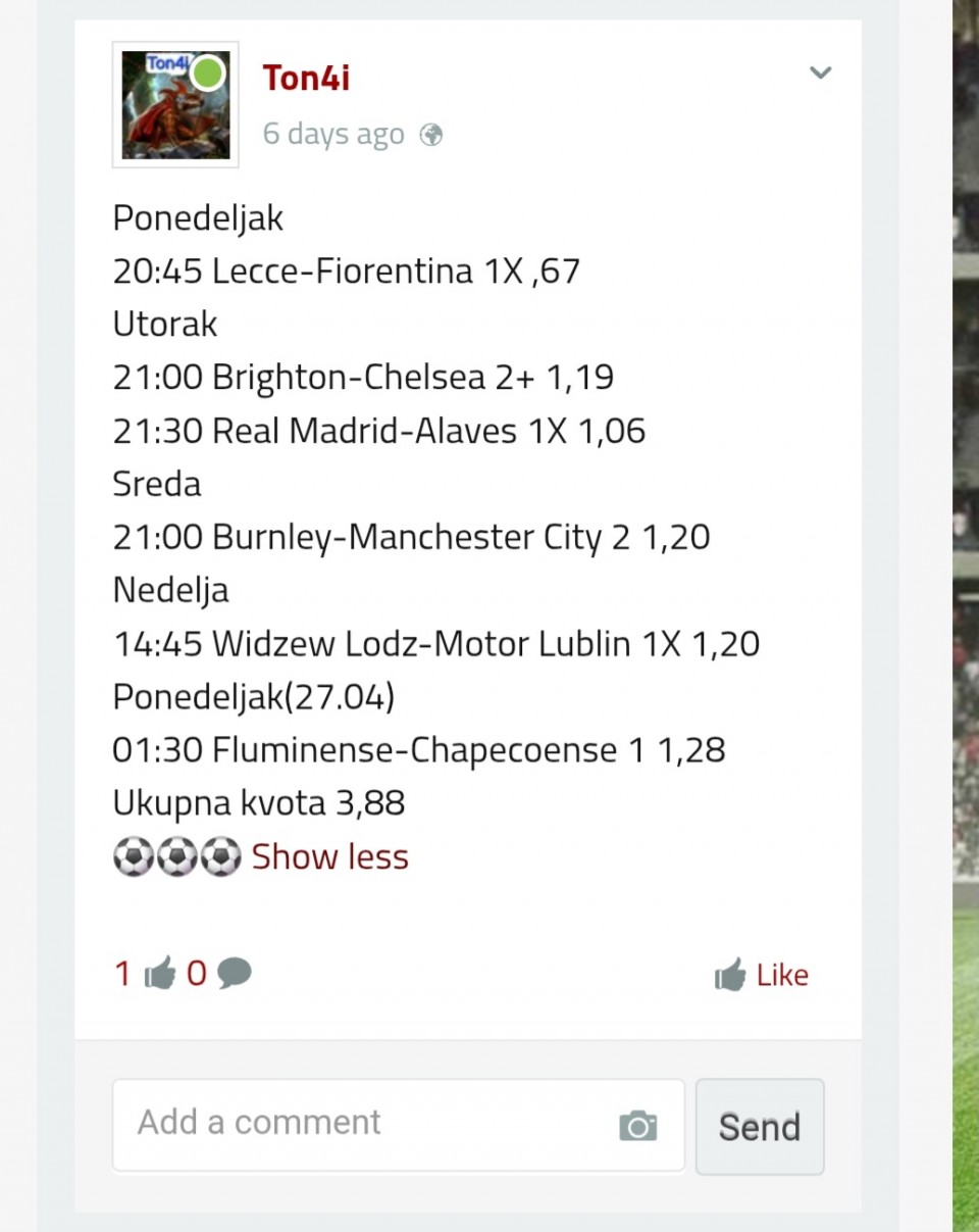 Dobar dan za sad s 3 wina 1 fail i 2 voida, Genk over 1 pp 0 0 i normala 2+ drugo, sad forsirano Verona over 1 pp 2,5 20.45 kick off
