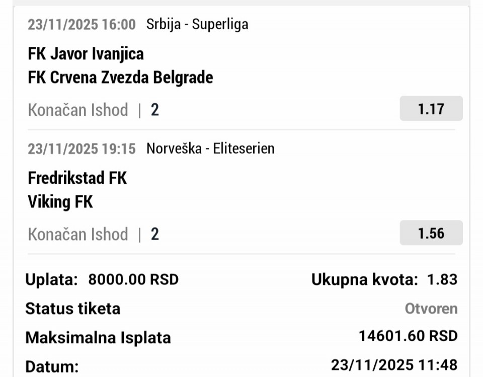 Svaki ljubitelj fudbala bi voleo da novi sampion svoje zemlje bude neko ko nije dominirao nekoliko godina. Tako je bilo u zlatnoj eri Rozenborga. Viking ceka titilu nekih 3 decenije ako se ne varam. Stvar drze u svojim rukama. Racunica je jasna. Ovde ako dobiju. Kući je proslava titule. Samo ako pobede i u poslednjem kolu. Ne volim ovakve mečeve ali se nadam da će Viking ovde pobediti i napraviti još jedno iznenadjenje na Skandinaviji pored Mjalbija iz Svedske. Sto de tice moje Zvezde. Prosula je nekoliko bodova par kola unazad ali i pored toga Partizan nije umeo juče to da iskoristi. Ako nisu i ovaj mel prodali. Ovo dolazi i u 100. minutu. Ajmo braćo Vikinzi do titule.