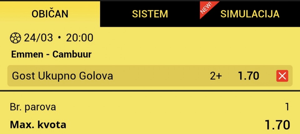 Video sam da im je ovo cetvrti medjusobni mec i da se svaki do sada zavrsio rezultatom 1-0 za neku ekipu, probam samo zbog toga, ako ima neke podele bodova onda je na redu Leiria da pobedi pa se moze i to probati na sitno, kvota 3.45, svakako idem sa ovom malom sigurnijom varijantom da bilo ko da gol do kraja, srecno ako neko isprati