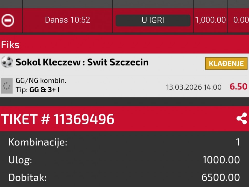 Svi mecevi do sada isli su iz X, takodje sumnjivi su medjuosbni mecevi, izgleda da je na redu 2. Igramo prelaz X-2, na manji ulog. Ostali predlozi u komentaru.