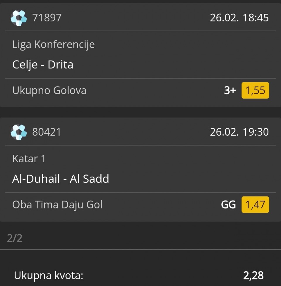 Igram ovo jer je moj drug pričao danas da će igrati GGI&GGII. Kaze da je kvota bila oko 20. Ajde da poguramo golove. Mozda bude po gol.