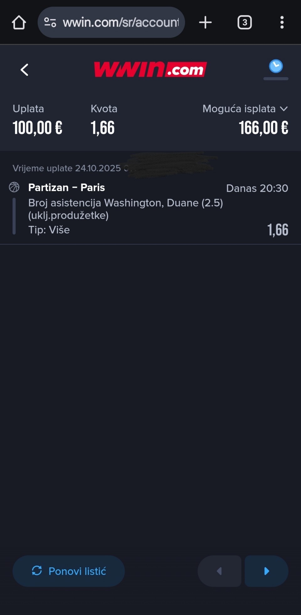 jednostavno ovo ne znam kako da padne, nakon ove prve tekme spursa drugi scenarij osim ovog mi nema smisla, pelikani klasicno losi cak su i vodili nad grizlijima ali ocekivano izgubili, jedino je malo lose je sama kofa na wembija jer je izdominirao prvu tekmu i sad mu je grana bas visoka al u ovoj kombinaciji mi je sasvim okej, sretno