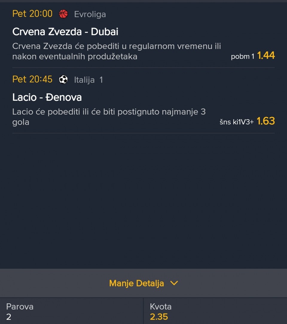 Espanjol 1, 0/2 gola. Lacio gg, (oba tima po dva gola12 kvota admiral) Bristol Siti gg, Gimaraes 1x 2+. Probati na sitno Den Hag : Jong Aze tip 2 , 8,45 kvota na osecaj.