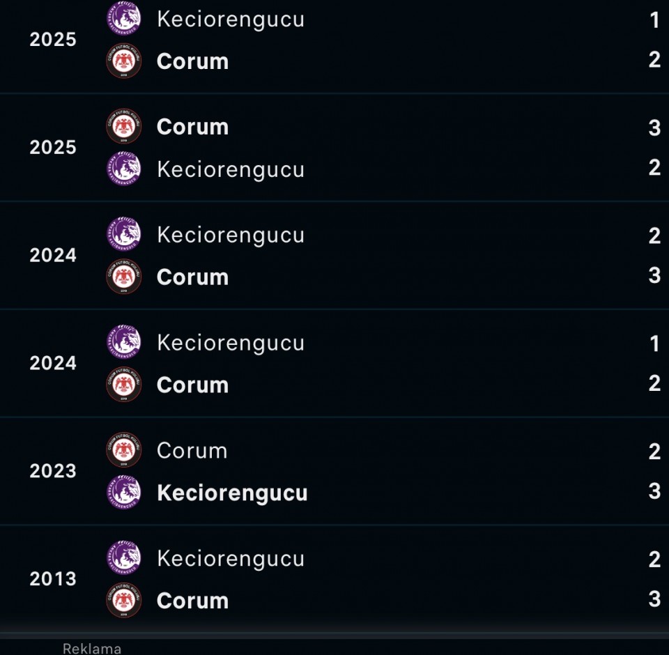 u posljednja 5 mečeva 3 su imala prelaza dva u koristiš corum i jedan keciorengucu