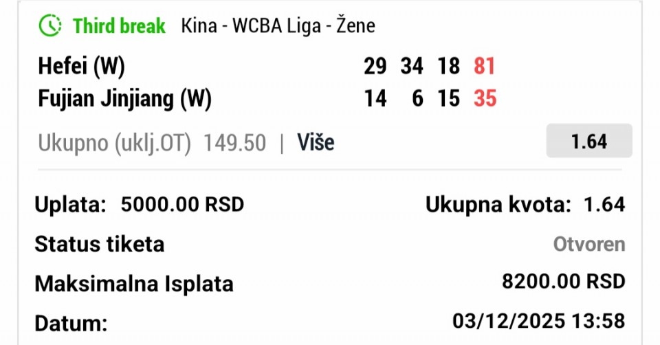 Da ispratim zadnju cetvrtinu. Nepisano pravilo da ide efikasnija cetvrtina posle neefikasne. Kod žena ne možeš da se oslanjaš na to. Uzdam se u sreću i da su sposobne da ubace dovoljno za win.