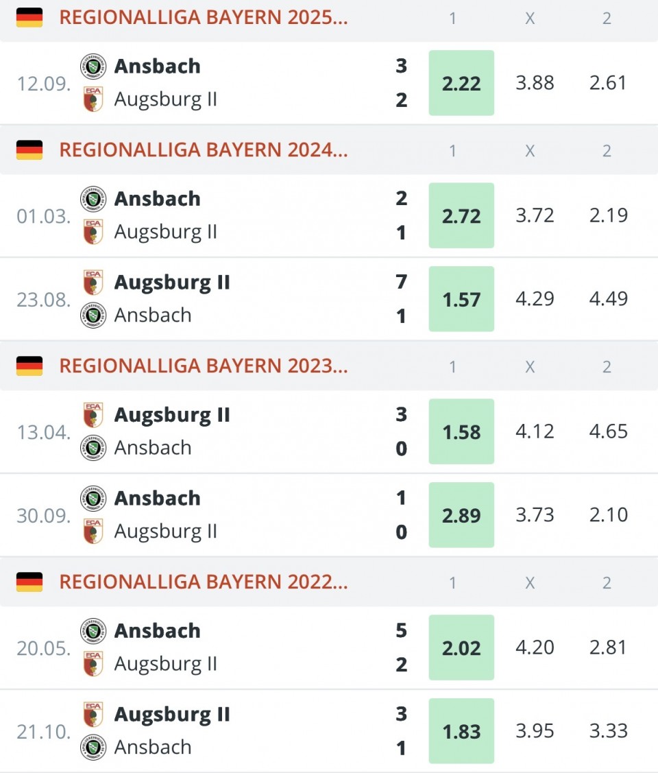 🇩🇪 14:00 Augsburg II - Ansbach 1 (1.77)/ 1&2+ (2.00)/ 2-1 (25.00)