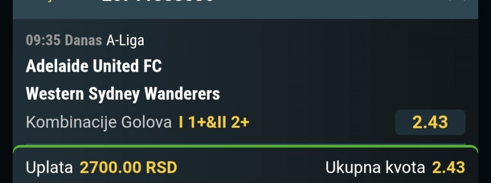 Tiket za sutra, ukupna kvota @4.67 soccer
