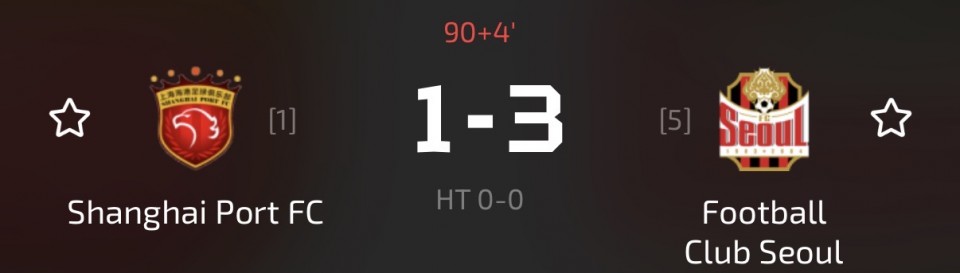 🇨🇳 11:00 Shanghai Port - Seoul 3+ (1.65)/ 2-1 (40.00)/1-2 (22.00)
