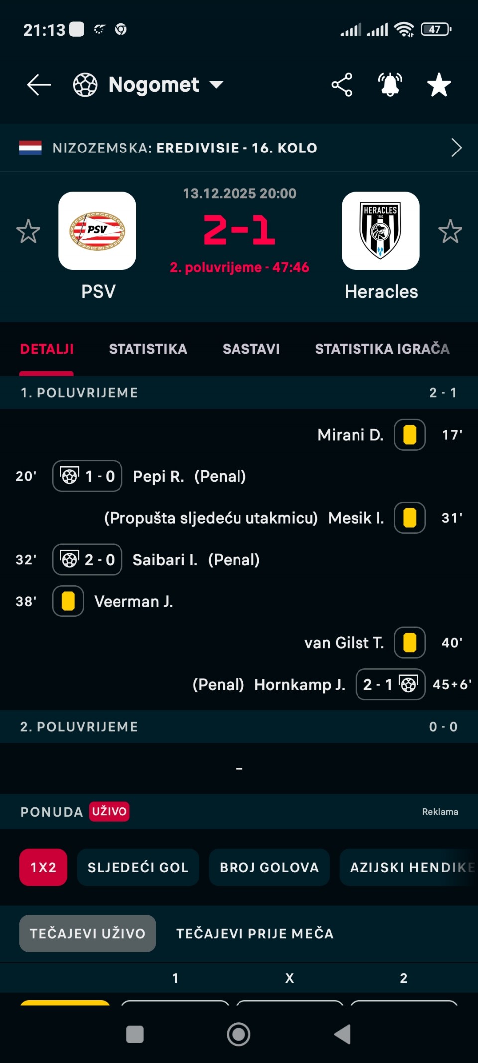 Veoma zanimljivo 3 penala prvo poluvreme Probati X2 na Manji Ulog 2