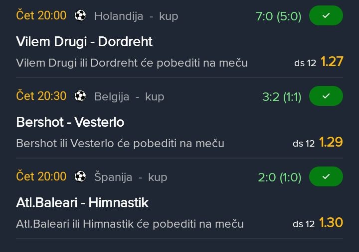 Kako su me razocarali poslednji prelazi. Prvo Honved ponisten gol zbog ofsajda, a drugo italijani su isto lepo krenuli, medjutim Latina nije mogla do potpunog preokreta. Elem, vracamo se standardnim tipovima
