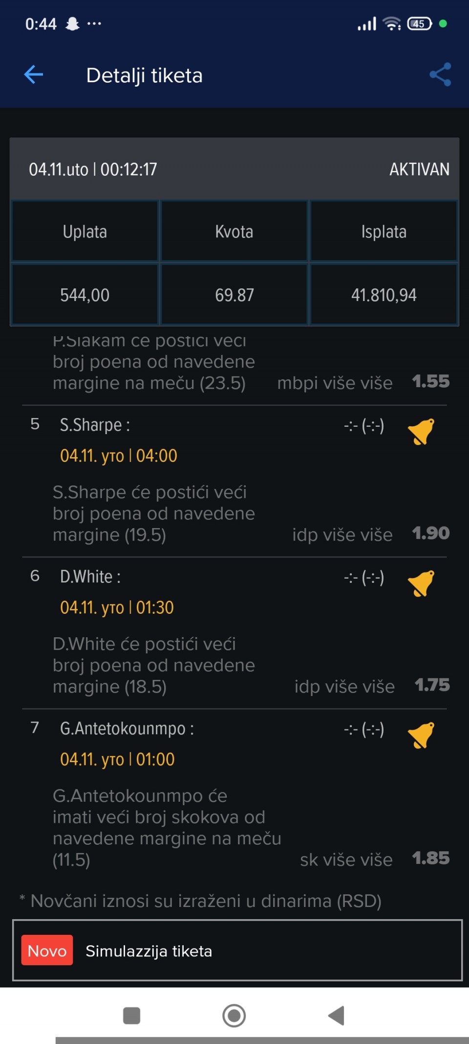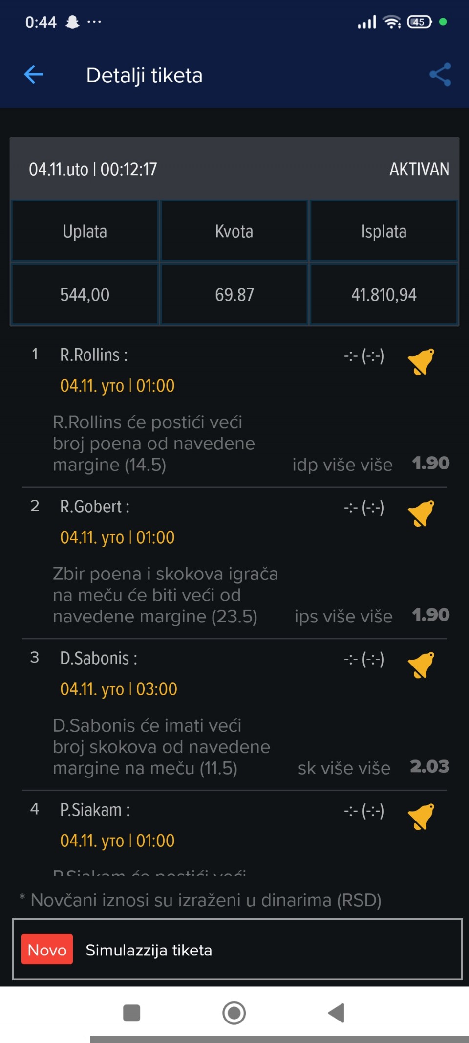 P.S. ko želi moze na sitno probati igrati 2 na Sacramento večeras mislim da je kvota pomalo nerealna 5 i nesto na goste a realno imaju mnogo dobru ekipu plus igra Westbrook biće motivisan protiv bivšeg kluba a on...