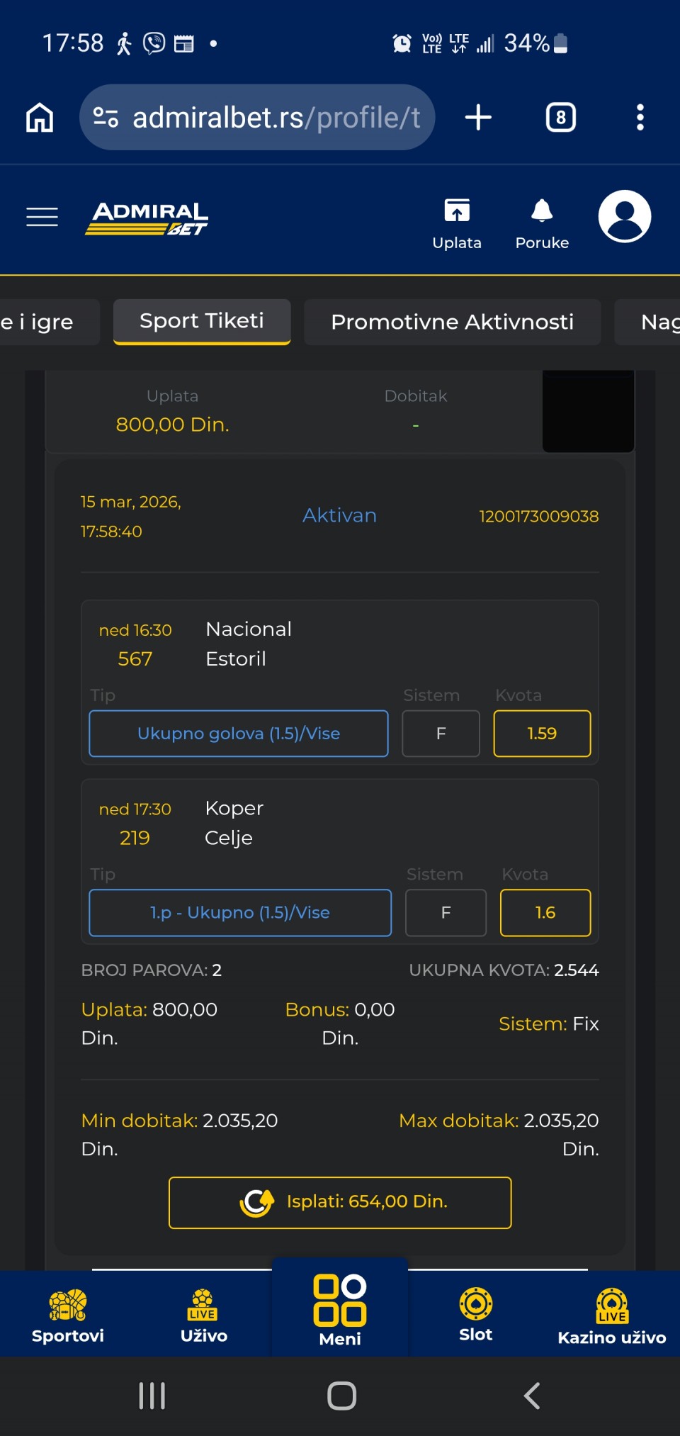 ukupna kvota: 2.23