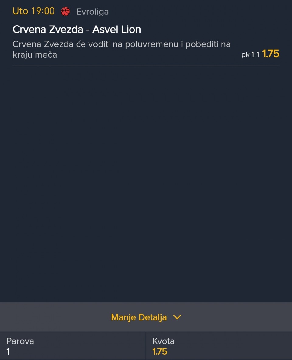 Na ovom meču, Crvena zvezda neće moći da računa na najboljeg strelca i najkonstantnijeg igrača dosadašnjeg dela sezone – Jordana Nworu. To je svakako hendikep za crveno-bele, ali činjenica da igraju na domaćem parketu, uz podršku publike, donosi im dodatnu energiju i momentum.