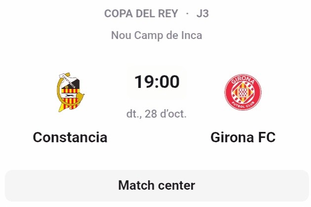 Kup utakmica gdje je Girona ogromni Favorit po kvoti 1.10. Na zadnjem mjestu Girona koja prima svaku utakmicu nemal golove zadnje kolo u La Ligi 3 3 protiv Oviedo. Constancia u svojoj Ligi jos nema...CD Constancia