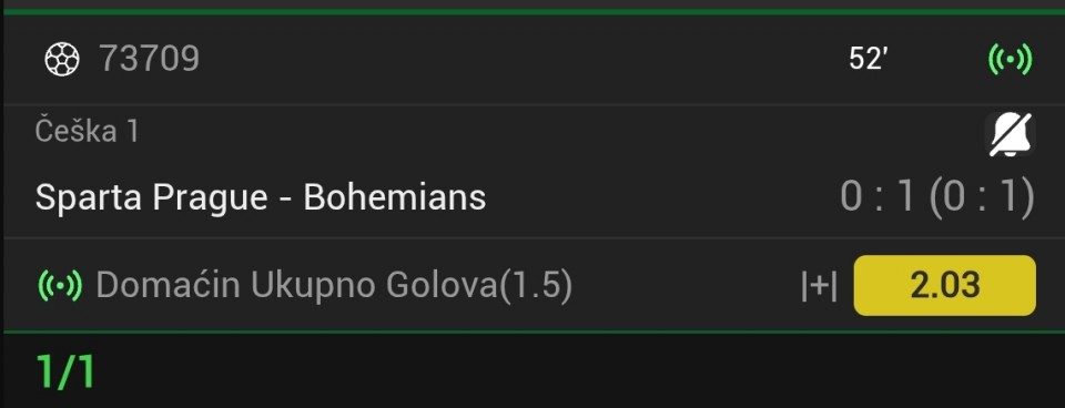 🇨🇿 17:00 Sparta Parg - Bohemians G1+ (1.75)/ GI1+ (3.00)/ 2-1 (23.00)