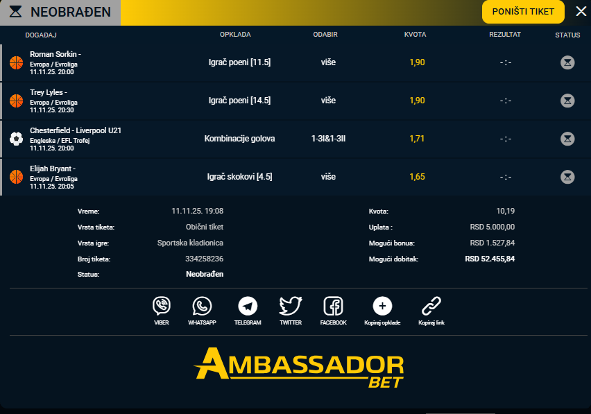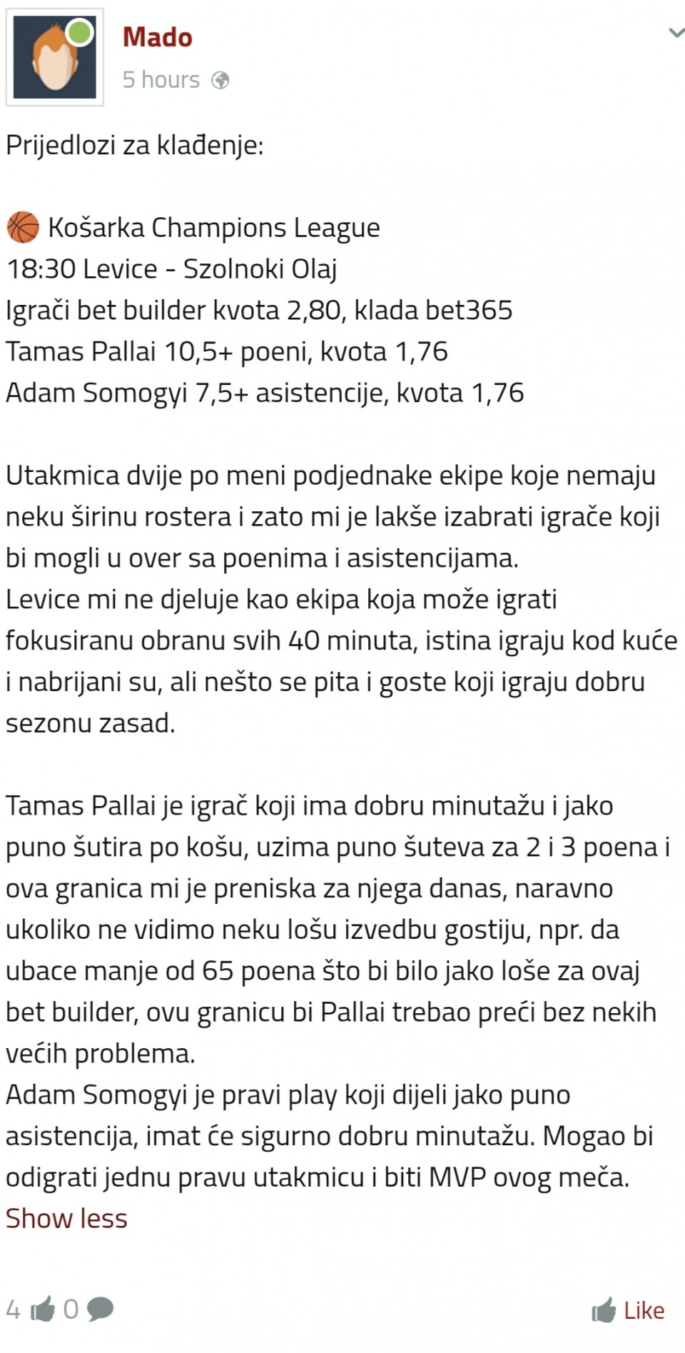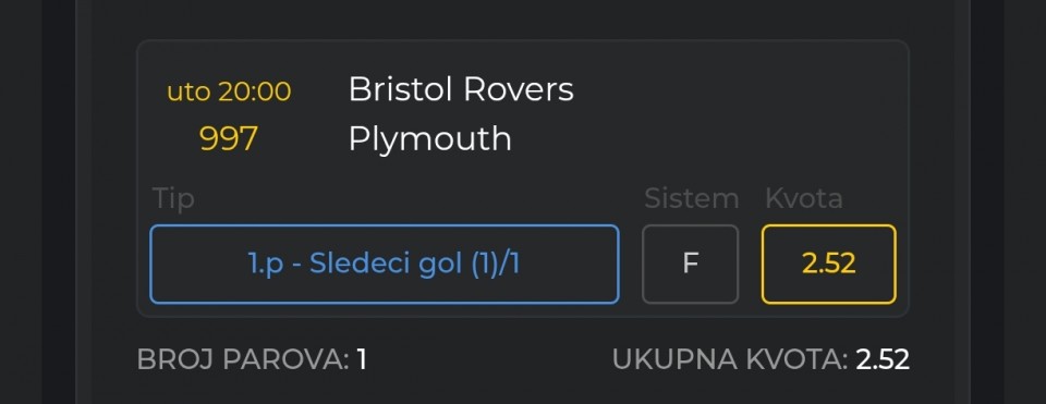 Ovo je liga bez briga, kod njih za trecinu zna da padne 5 komada. Ocekujem ovde 5+ do kraja, samo da se nacnu i verujem da ce kliznuti do kraja petica.