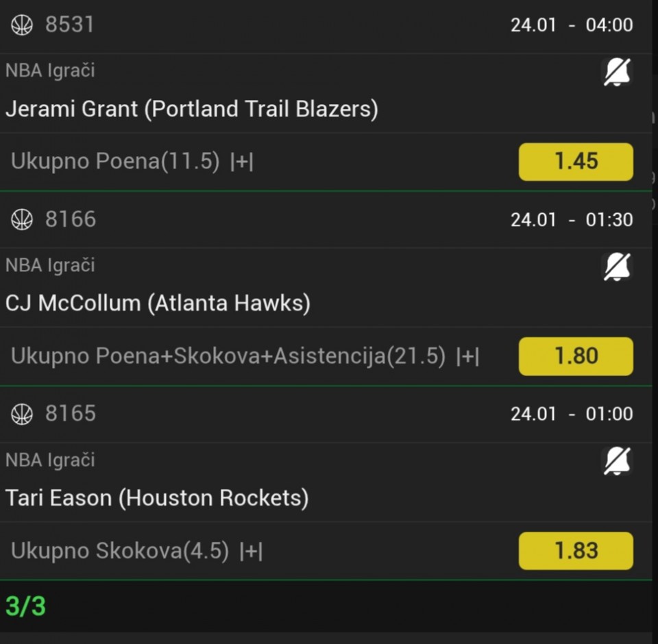 Tre jones sinoc kao sto...Dobar dan svima pre svega, idemo u standardni rekap od sinoc, i zal meni makar ostaje jer je vrlo lako moglo i po meni trebalo biti 5/5, medjutim malo je falilo. Ipak idalje pristojan ucinak sinoc.