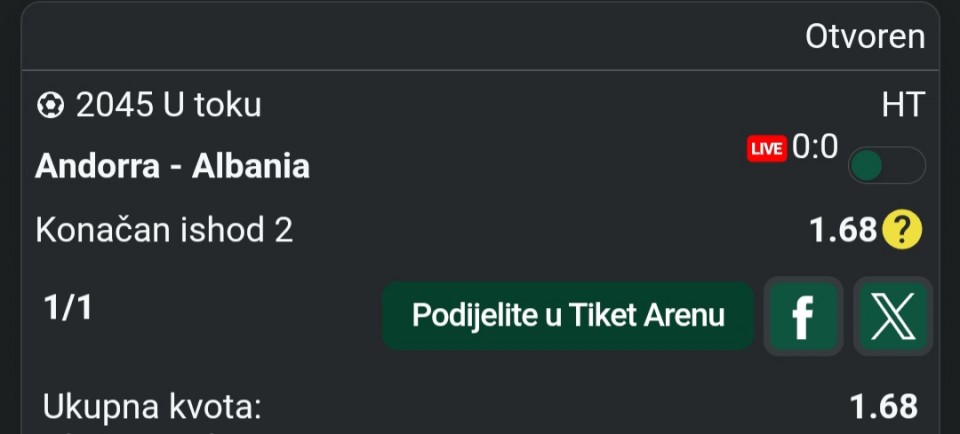 Andorra - Albanija 3+ (2.25) na ovakvu kvotu uzimam oberucke, ne kapiran zasto je tako u rastu kvota ali ja uzimam ovo.