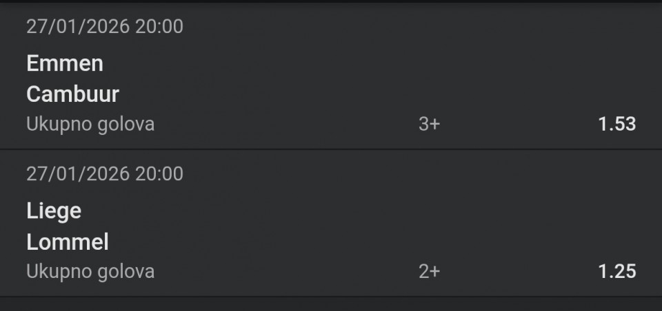 Pozdrav svima. Samo da podijelim jedno moje rszmišljanje sa Vama. Naime sutra se u 18:00 sastaju Njemačka-Francuska. Ako Francuzi pobijede imaju 6 bodova kao i Danci koji su ih u međusobnim pobijedili. A Danci igraju poslije njih sa Norvežanima a...Pozdrav svima. Samo da podijelim jedno moje rszmišljanje sa Vama. Naime sutra se u 18:00 sastaju Njemačka-Francuska. Ako Francuzi pobijede imaju 6 bodova kao i Danci koji su ih u međusobnim pobijedili. A Danci igraju poslije njih sa Norvežanima a hendikep je za sad na 6.5. U slučaju da Francuzi pobijede msm da je to dobar value. Show more
