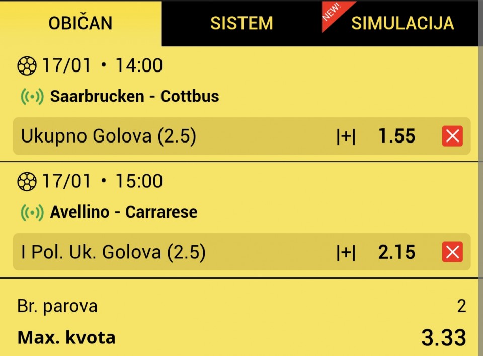 2 tiketa od mene nadam se bar jedan da pozeleni...