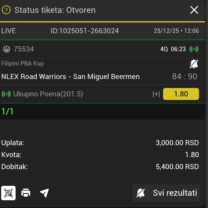 Road Warriors- San Miguel Beermen over 189,5 koef 1,7