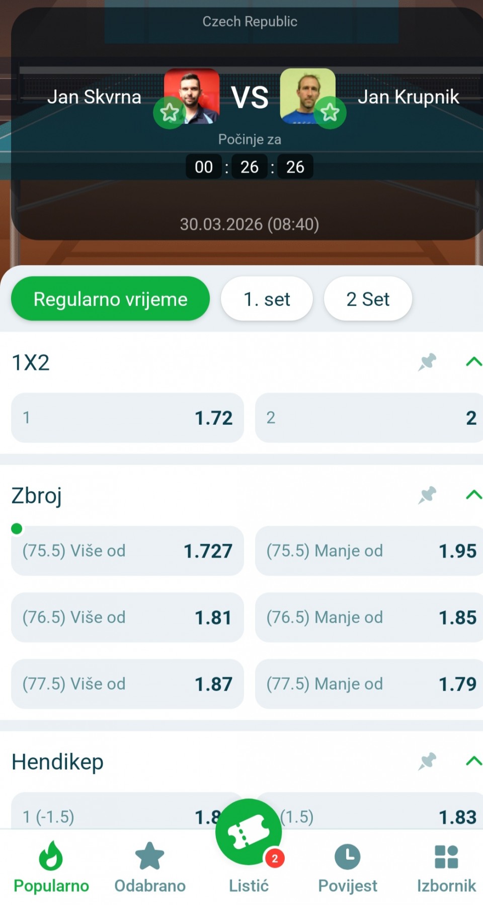 tip: over 2.5 ( 77 minut trenutni rezultat 1:1)