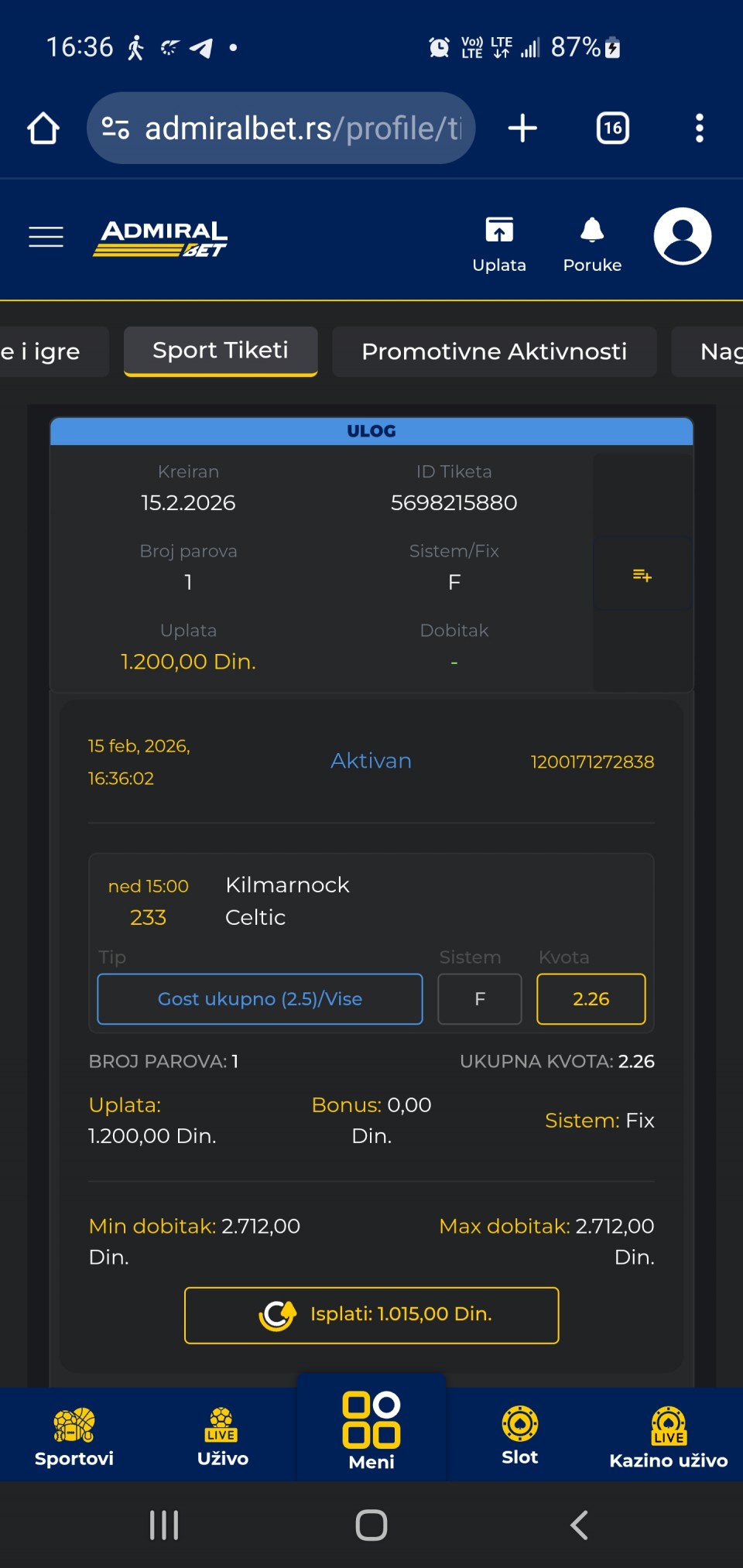 znači danas ne jurim dublove i kvotu 2+ pravim pauzu