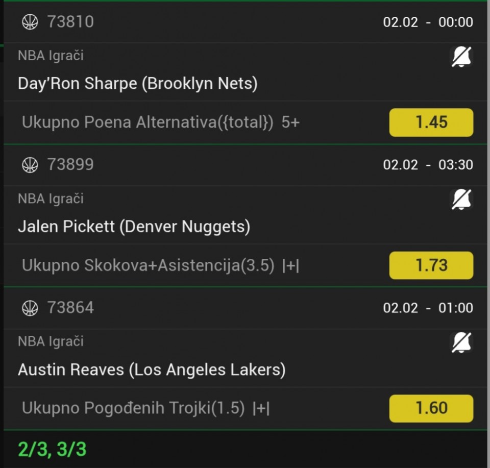 E sad ako prođe, stavio bih sav dobitak (8500) na 2-3 NBA para za poene igrača za noćas. Pa mi treba nečija pomoć ko se razume šta da eventualno odigram, pošto sam totalni duduk za to. - feeling cool