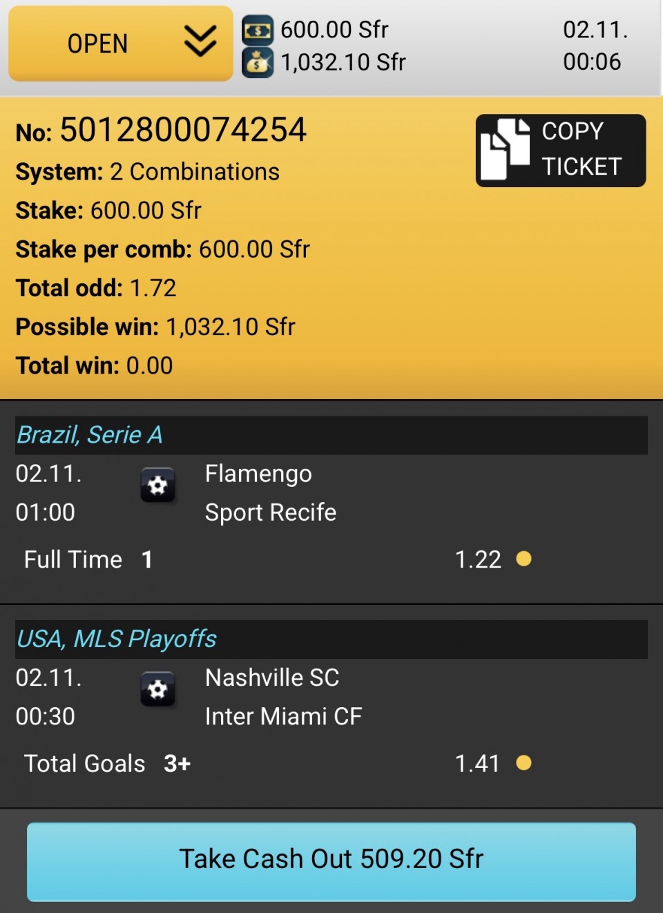 🇧🇷 01:00 Flamengo - Sport Recife G1+ (2.12)/ GI1+ (3.90)/ 2-1 (25.00)