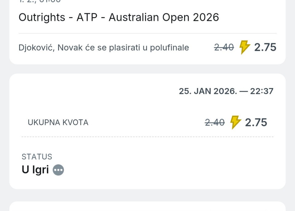 Upropastih procenat pogodjenih dublova zbog srljanja. Vise to ga nema. Da sumiramo od cetvrtka do danas +61.400din, a bilo je 80 i nesto hiljada danas smo malo pali no nije vazno plus je plus koliki god on bio. Čujemo se u sredu kad krene LŠ do tad hladjenje. Pozz