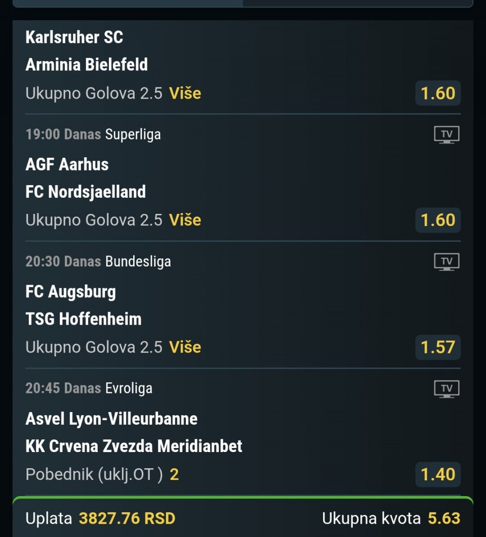 Jutros oko 10h kada sam video ovaj par. Hendikep je bio oko 15.5. Sad je mnogo veći.