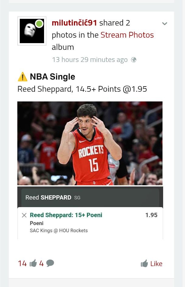 Dobar dan svima, definitivno sa moje strane veliki minus da ne kažem dno od početka 2026... Vidim da dosta članova igra na ovakav način, dosta strpljenja i čekanja koje ja nisam imao... Probaću na dnevnom nivou da jurim kvotu oko 2 , ako bude loše...Dobar dan svima, definitivno sa moje strane veliki minus da ne kažem dno od početka 2026... Vidim da dosta članova igra na ovakav način, dosta strpljenja i čekanja koje ja nisam imao... Probaću na dnevnom nivou da jurim kvotu oko 2 , ako bude loše išlo, prekidam kladjenje definitivno... Pamet u glavu momci i devojke, kocka je zlo, ja sam osetio to na svojoj koži, ako niste umereni i neograničite neki novac ovo definitivno nije za vas( iz ličnog iskustva govorim) ... Ne prosipam pamet ovde,niti želim ima super ljudi ovde i tipsera, ali što glava može da uradi, to ne može ništa drugo... Ljubi brat, da svi budete milioneri😘 Show more
