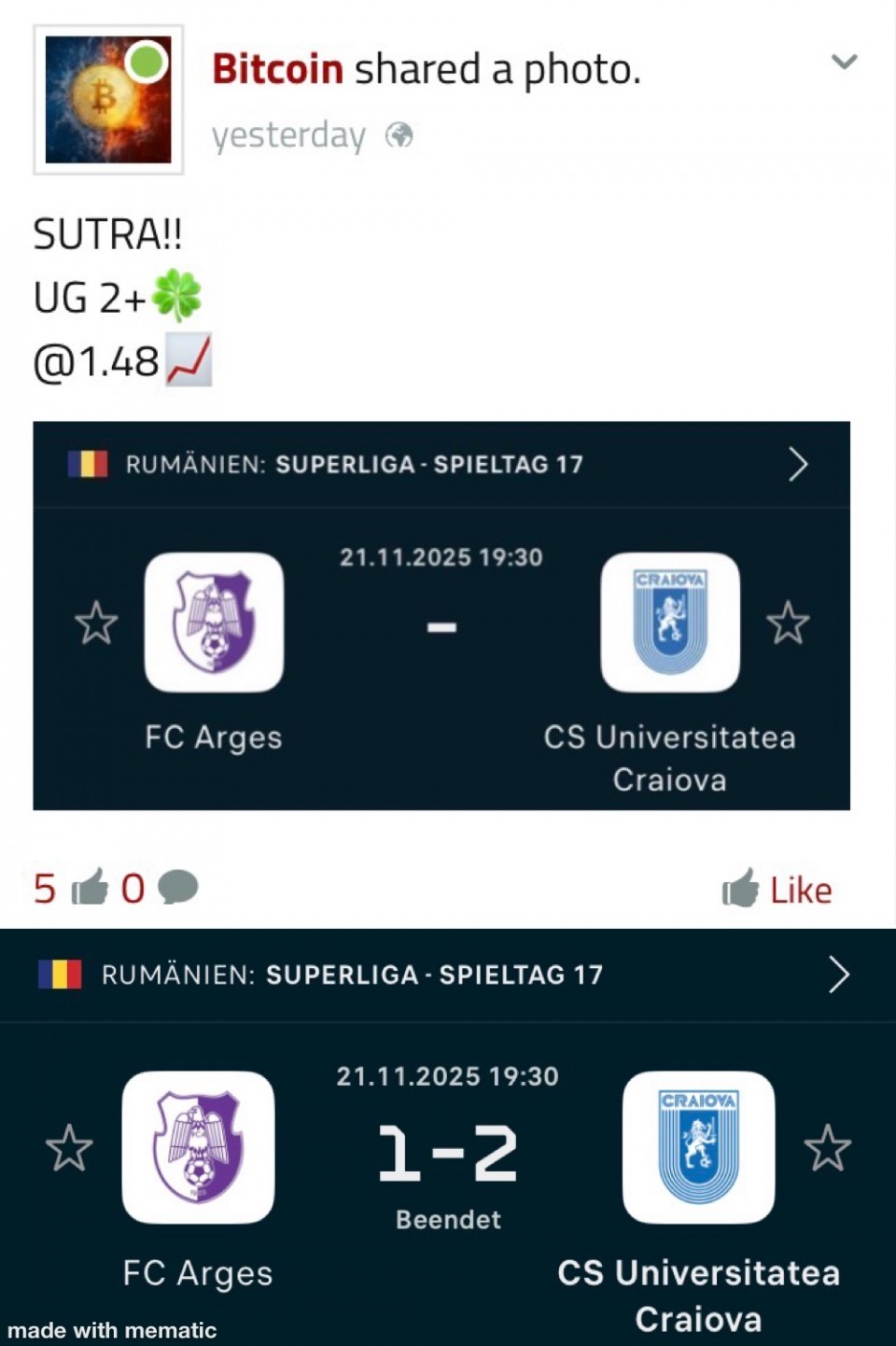 🇷🇴 19:30 Arges - Univ. Craiova GGv3+ (1.80) #WIN ✅