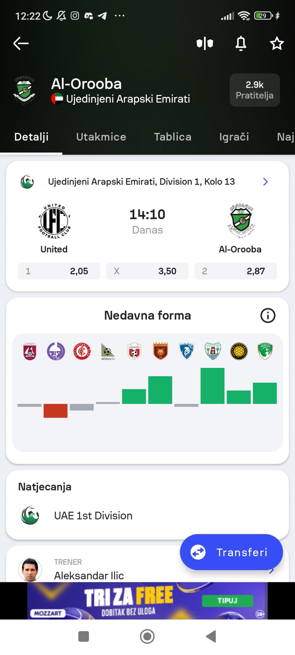 📈 Kvota: 1.95 (Mozzart)
