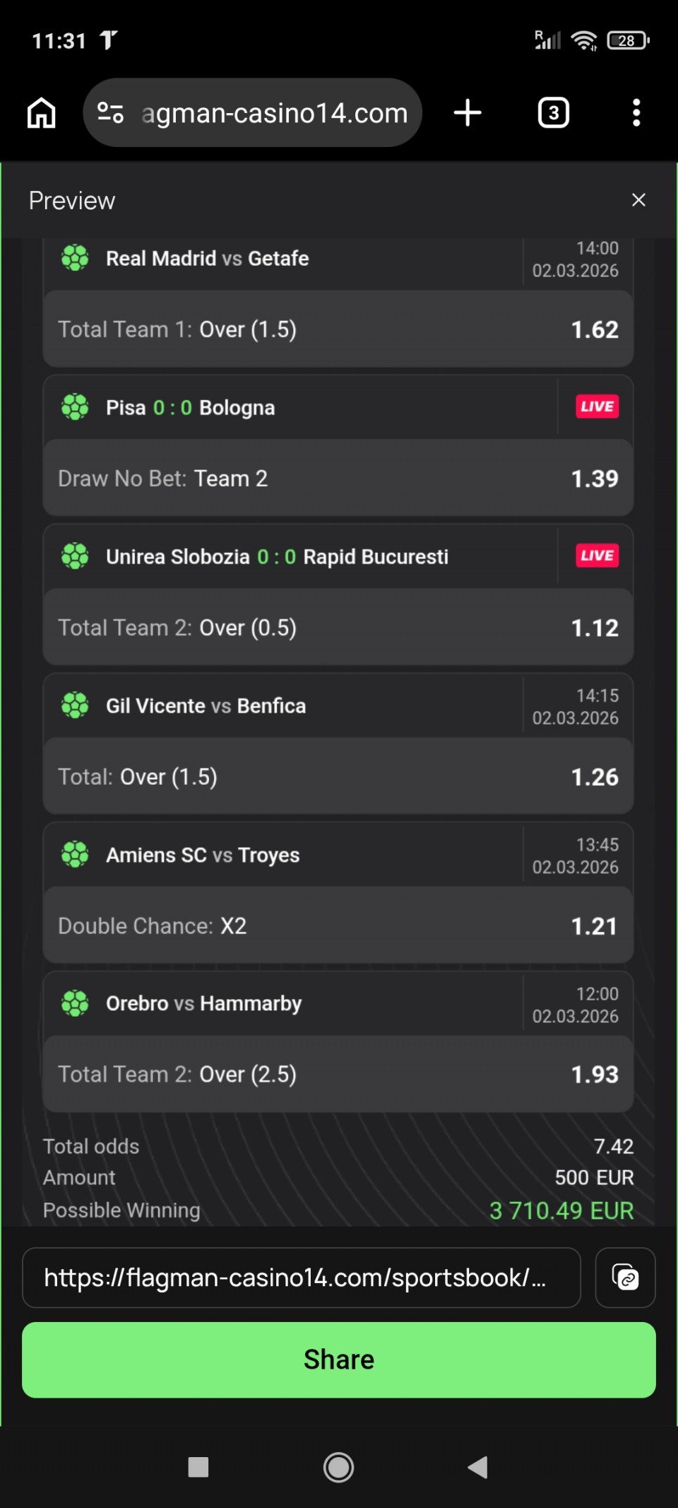 21:00 Real Madrid - Getafe 1 (1.33)