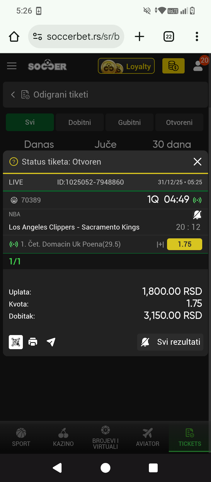 Jos jednom da se zahvalim na velikoj podrski u ovom dobrom mesecu za mene, nadam se da cemo tipove za ovu godinu zatvoriti na lep nacin i kako dolikuje sa nekim 3/4,4/4 a mi se svakako cujemo sutra za prve tipove u novoj 2026-oj godini