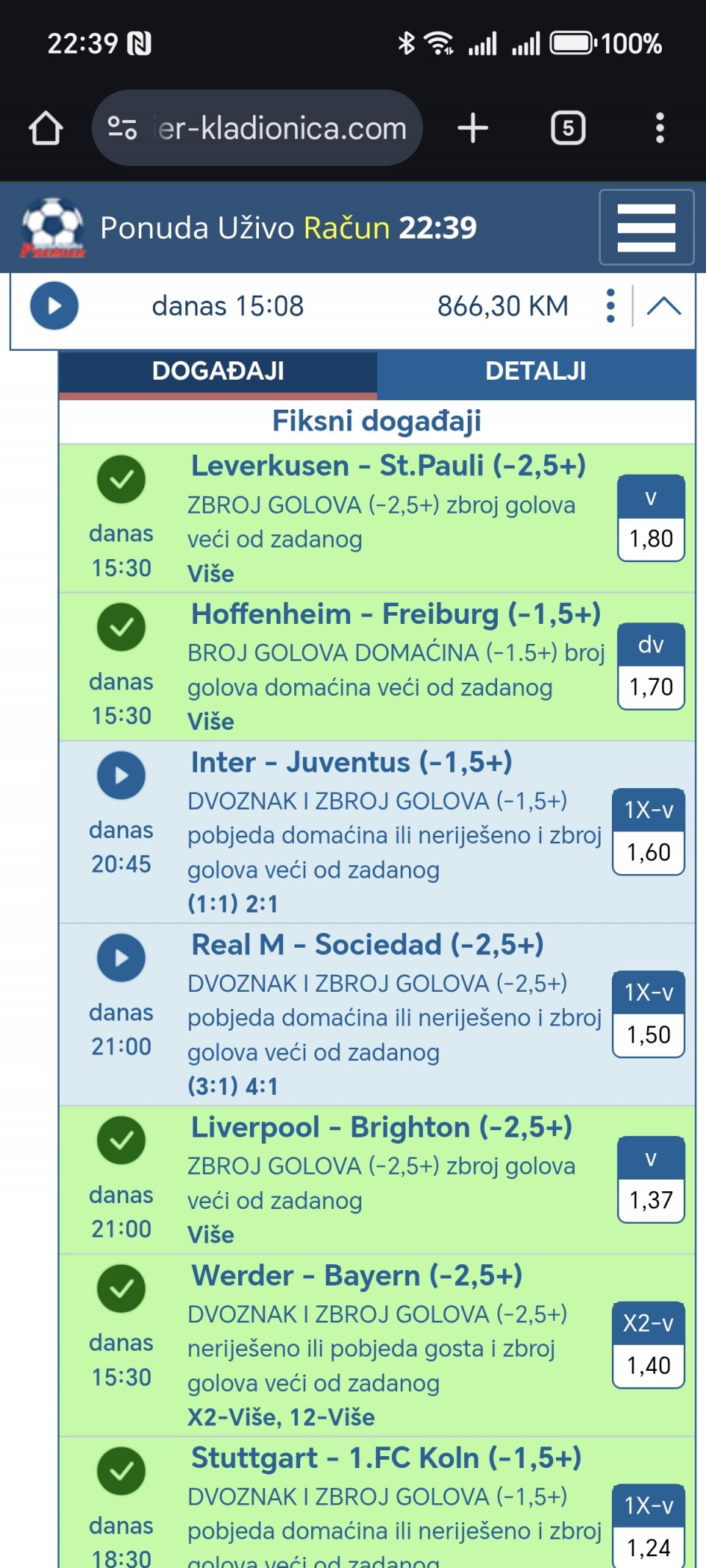 tip: over 1.5 (63 minut trenutni rezultat 1:0)
