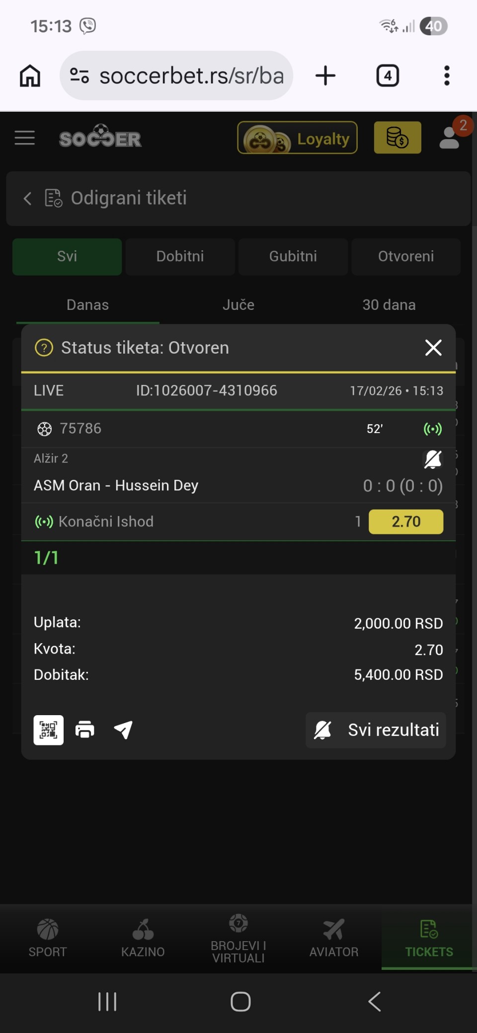 tip: over 2.5 (67 minut trenutni rezultat 1:1)