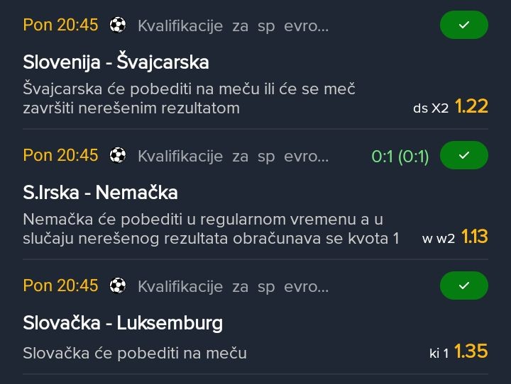 20:45 Slovenija - Švicarska W2 korneri - Švicarska će imati vise kornera od protivnika na meču (1,50) WIN ✅