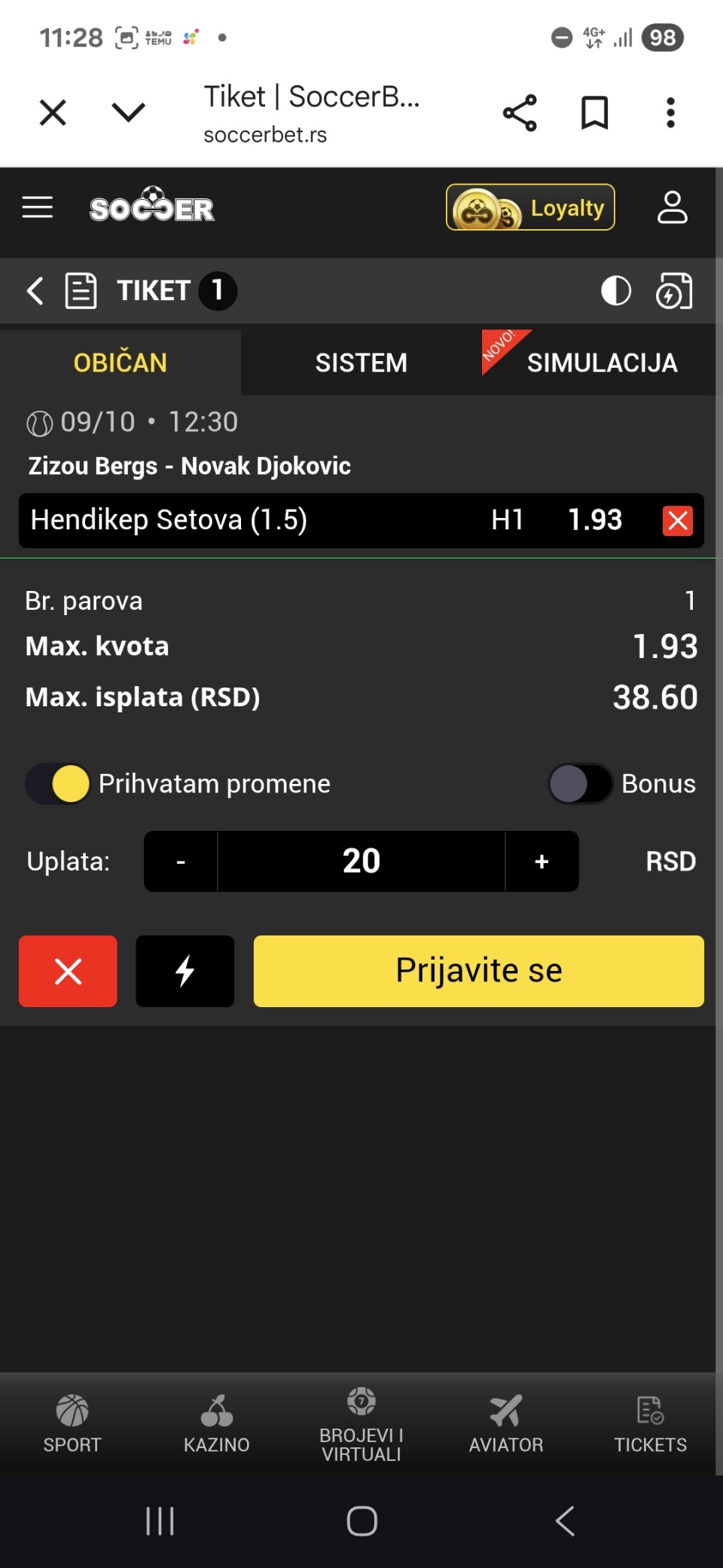 Ovim tiketom započinjem svoju igru kao pre 2 nedelje , ko me malo pratio zna da sam imao 10 pogodaka od 12 odigranih tiketa i podigao sam 87 000. Ostatak tiketa kačiću u komentaru bice vrv jos jedan. Ako neko prati srećno, svim ostalima dosta sreće...Ovim tiketom započinjem svoju igru kao pre 2 nedelje , ko me malo pratio zna da sam imao 10 pogodaka od 12 odigranih tiketa i podigao sam 87 000. Ostatak tiketa kačiću u komentaru bice vrv jos jedan. Ako neko prati srećno, svim ostalima dosta sreće u uzimanju novca od kladionica. Srećno ekipa 😊🍀 Show more