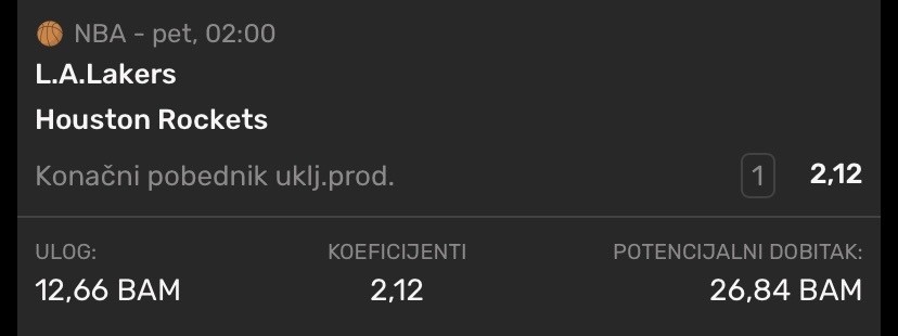 Ja cu ovako NBA Denver-Minesota bi trebalo da prsti sto i granica pokazuje - Hardaway vezao dve poslednje tekme 20+, protiv Minesote je takodje u nizu poslednje dve tekme 20+. Flagg u opasnoj formi, kontam da ce mu dizati i granicu uskoro. Castle...Ja cu ovako NBA Denver-Minesota bi trebalo da prsti sto i granica pokazuje - Hardaway vezao dve poslednje tekme 20+, protiv Minesote je takodje u nizu poslednje dve tekme 20+. Flagg u opasnoj formi, kontam da ce mu dizati i granicu uskoro. Castle na prethodne 3 prelazio ovu granicu, dok su mu poeni u prethodne 3 tekme protiv Oklahome 24,22,32. Jedan tiket je prepisan sa sajta uz dodatak Jokare - tripl dabl masine. Show more